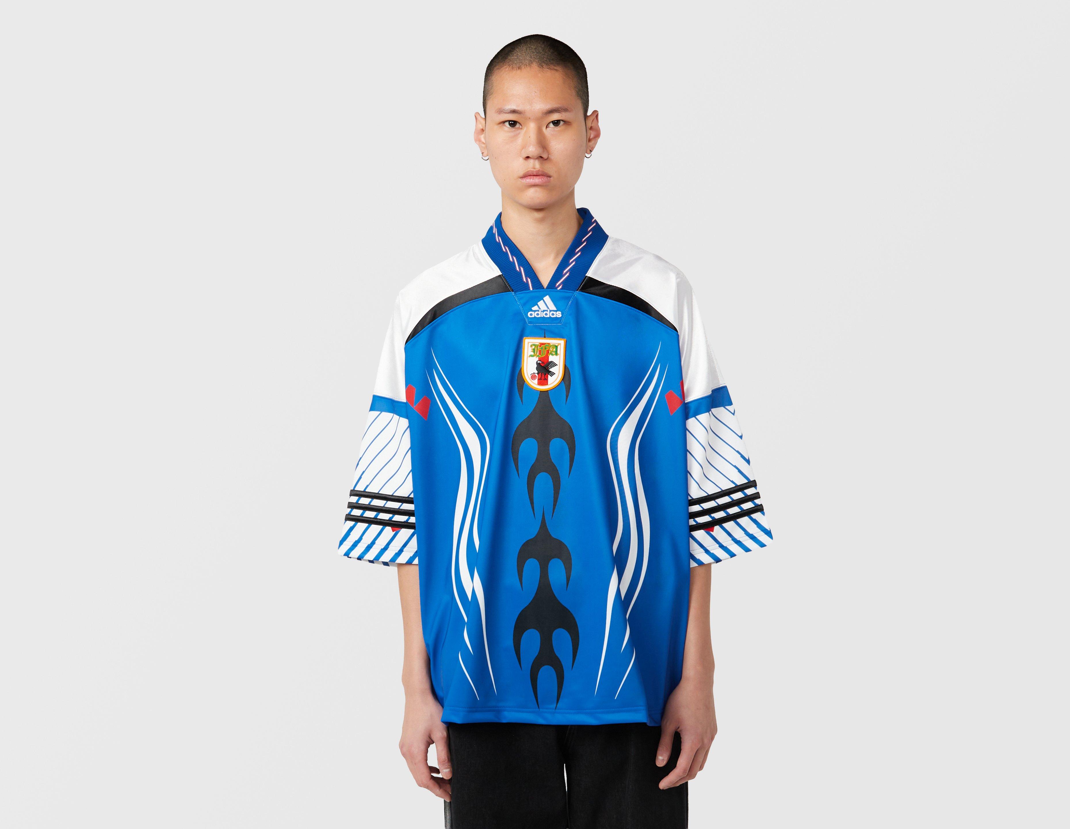 Archival-inspired, the adidas Originals Bringbacks Remixed Japan Jersey is cut from recycled polyester knit fabric to an oversized fit with a V-neck collar.